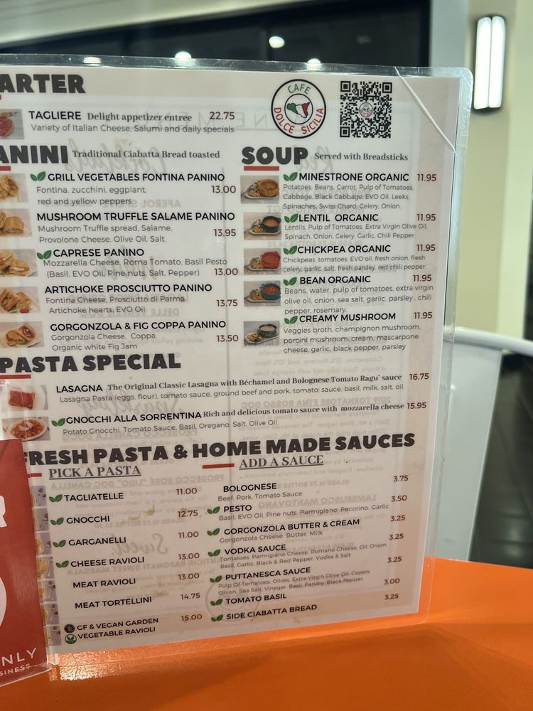Cafe Dolce Sicilia Menu